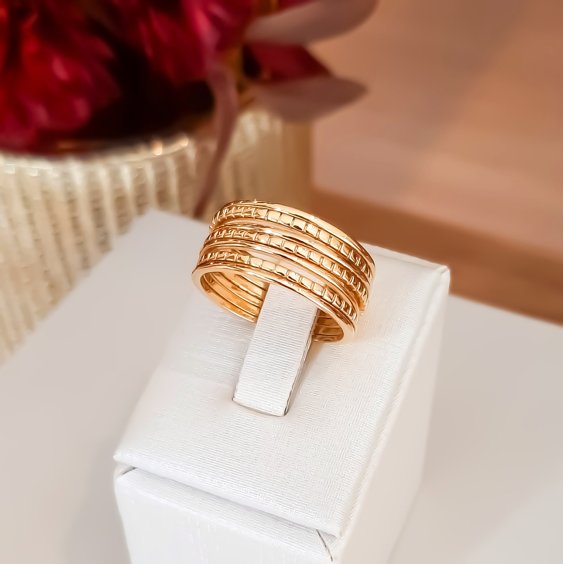 Anel design 7 elos lisos e com detalhes.